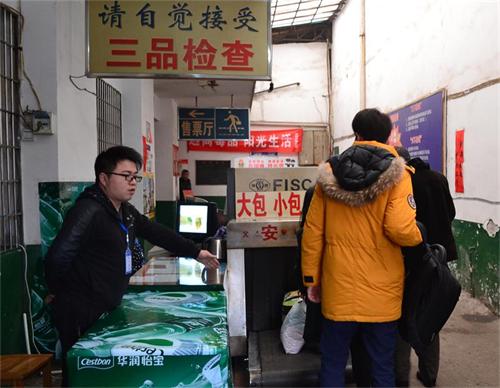 婁底汽車站工作人員認(rèn)真指揮旅客接受行李過機(jī)安檢