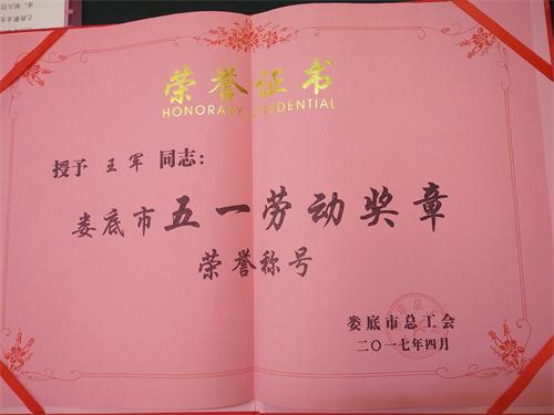 26日上午,婁底市"五一”先模表彰暨勞動競賽動員大會在華天酒店隆重召開,我司王軍同志在大會上被授予婁底市"五一”勞動獎?wù)聵s譽(yù)稱號。