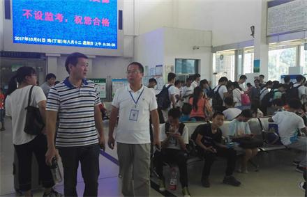 公司董事長(zhǎng)兼總經(jīng)理彭瑞華(左一)視察小長(zhǎng)假旅客運(yùn)輸工作