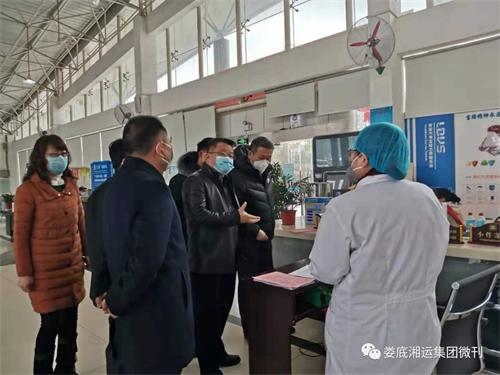婁底市交通局黨組書記、局長李鐵雄在公司黨委書記、董事長兼總經理彭瑞華陪同下,檢查婁底汽車南站新型冠狀病毒肺炎疫情防控工作