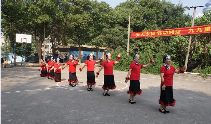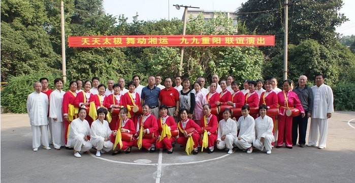 九時許,在歡快喜慶的腰鼓聲中 “天天太極 舞動湘運(yùn) 九九重陽”聯(lián)誼演出拉開了序幕。