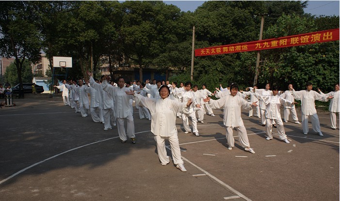 公司退休、內(nèi)退、協(xié)保人員自發(fā)組織了“天天太極 舞動湘運(yùn) 九九重陽”聯(lián)誼演出來慶祝自己的節(jié)目。公司董事謝克明、監(jiān)事萬新業(yè)、總經(jīng)理助理陳夢麟、退管辦主任李莉及原公司領(lǐng)導(dǎo)湘運(yùn)太極站顧問吳子書,喻振璜、龍緒鵬等參加了今天的慶祝活動。市太極拳協(xié)會會長粟立平、副會長陳翠云、秘書長喻鳳葵、副秘書長曾細(xì)威、辦公室主任周德華也應(yīng)邀到會觀看指導(dǎo)。