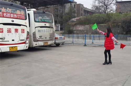 下圖為:“彩虹橋”優(yōu)質(zhì)服務(wù)班陳丹認(rèn)真細(xì)心的指揮婁底車輛倒出發(fā)班車庫(kù),指名倒車的穩(wěn)妥方位,確保安全發(fā)班出庫(kù)。