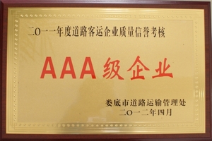 道路客運企業(yè)質(zhì)量信譽考核AAA級企業(yè) |